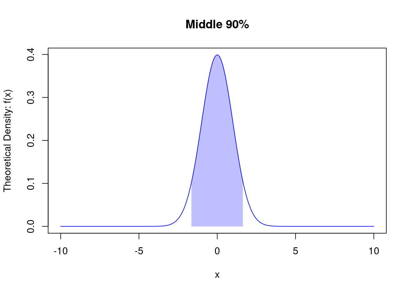 # CDF example 1P_low <-punif(0.25)P_low## [1] 0.25# Uncomment to show via PDF# x_low <- seq(0,0.25,by=.001)# fx_low <- dunif(x_low)# polygon( c(x_low, rev(x_low)), c(fx_low,fx_low*0),# col=rgb(0,0,1,.25), border=NA)# CDF example 2P_high <-1-punif(0.25)P_high## [1] 0.75# Uncomment to show via PDF# x_high <- seq(0.25,1,by=.001)# fx_high <- dunif(x_high)# polygon( c(x_high, rev(x_high)), c(fx_high,fx_high*0),# col=rgb(0,0,1,.25), border=NA)# CDF example 3P_mid <-punif(0.75) -punif(0.25)P_mid## [1] 0.5# Uncomment to show via PDF# x_mid <- seq(0.25,0.75,by=.001)# fx_mid <- dunif(x_mid)# polygon( c(x_mid, rev(x_mid)), c(fx_mid,fx_mid*0),# col=rgb(0,0,1,.25), border=NA)