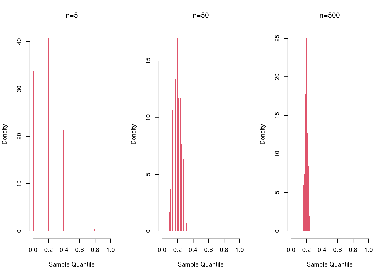 In fact, the Glivenko-Cantelli Theorem (GCT) shows entire empirical distribution converges: the ECDF gets increasingly close to the CDF as the sample sizes grow. This result is often termed the The Fundamental Theorem of Statistics.