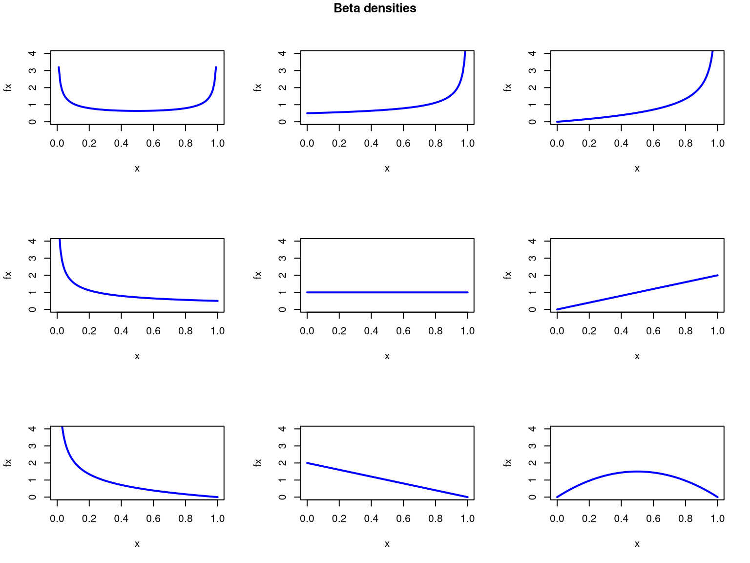 This distribution is often used, as the probability density function has two parameters that allow it to take many different shapes.