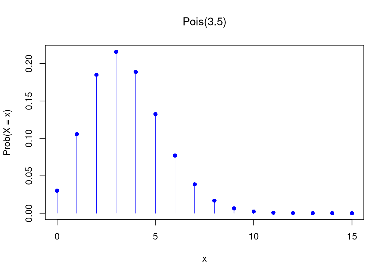 Probability Mass Function: \(Prob(X_{i}=x)=e^{-\lambda}\lambda^x/x!\)