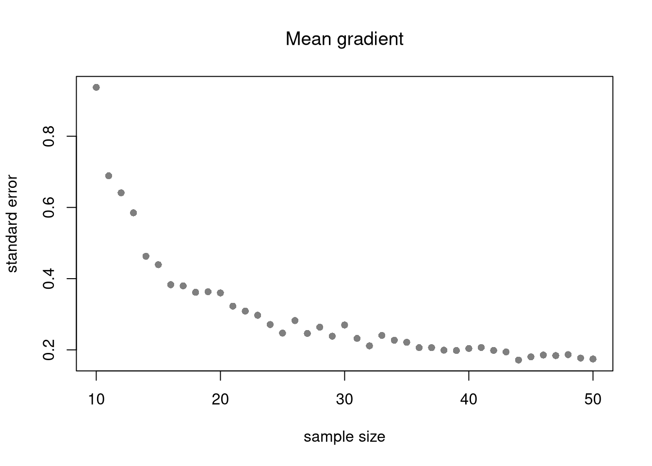 plot(y~x, pch=16, col=grey(0,.5),