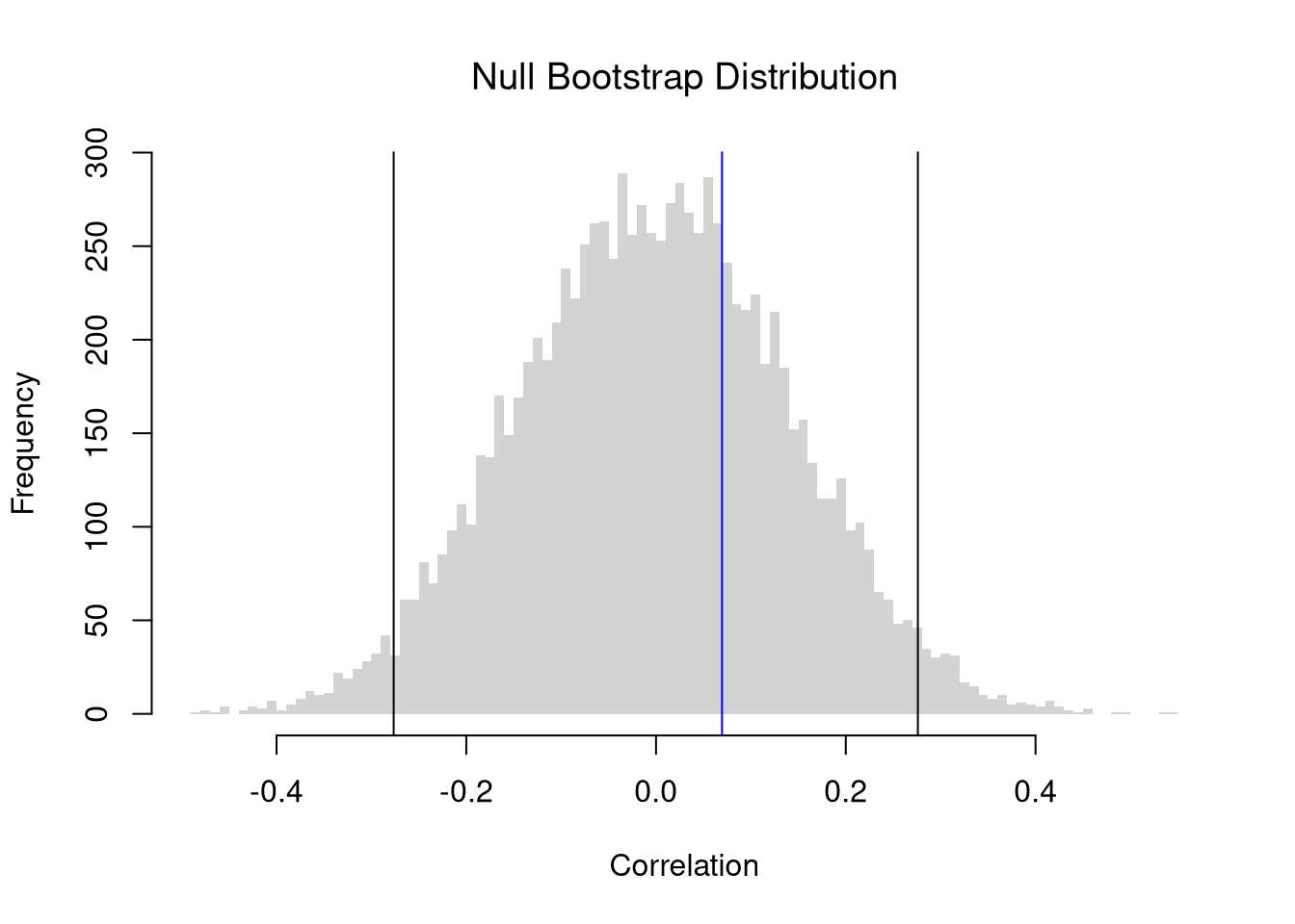 Importantly, we can also impose the null of hypothesis of no association by reshuffling the data. If we resample without replacement, this is known as a permutation test.