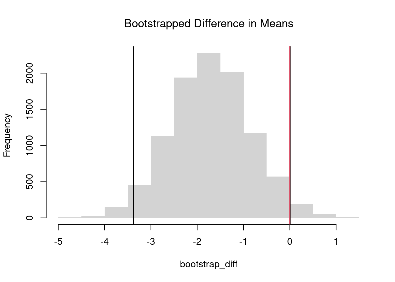 For “imposing the null”, it is more common to use \(p\)-values instead of confidence intervals. We can compute \(p\)-values using a null-bootstrap or permutation distribution. If using a hard decision rule, it is most common to use