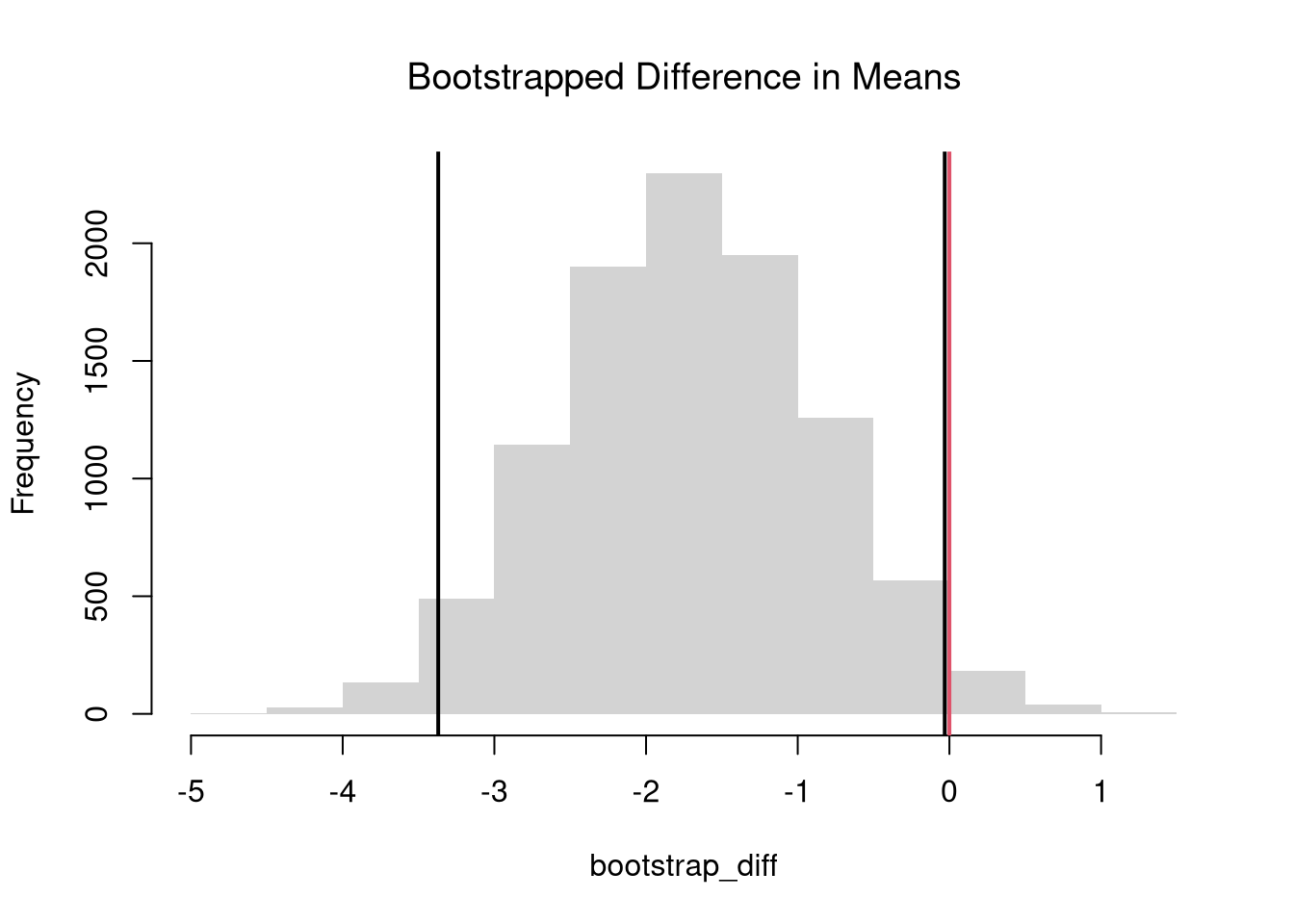 For “imposing the null”, it is more common to use \(p\)-values instead of confidence intervals. We can compute \(p\)-values using a null-bootstrap or permutation distribution. If using a hard decision rule, it is most common to use