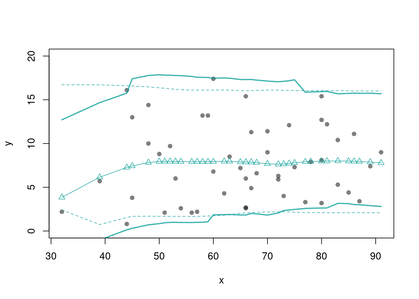#lines( x, pi[,'lwr'], lty=2)
