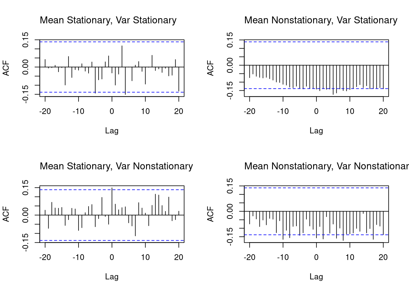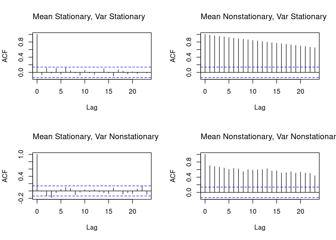 This helps detect temporal persistence (memory). For stationary processes, the ACF typically decays quickly, whereas for nonstationary processes, it typically decays slowly or persists.